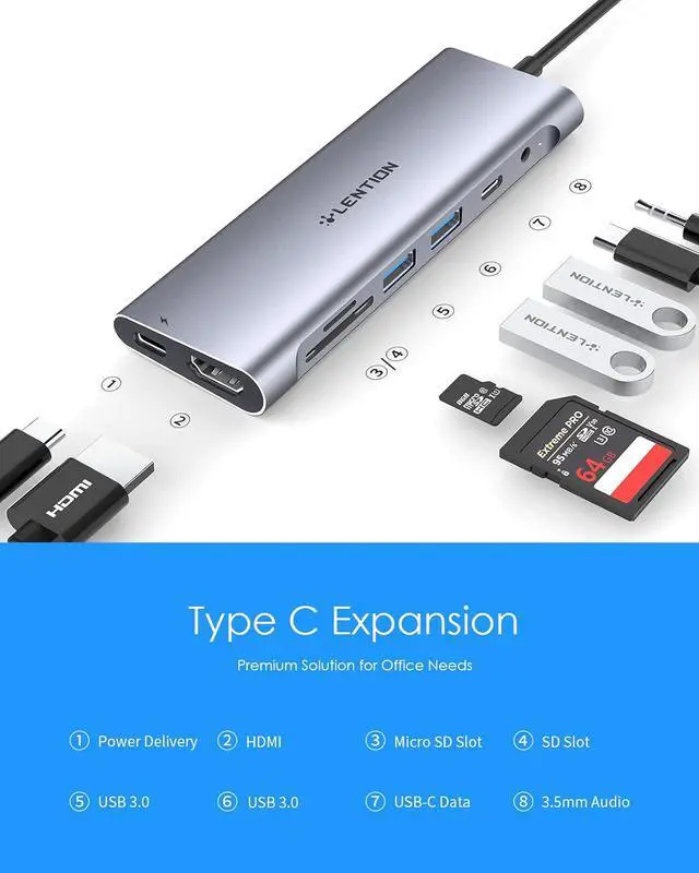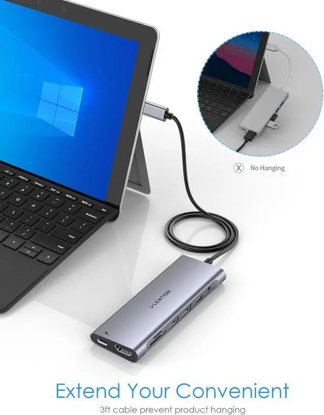 • Long Cable Extension: Particularly features a 3.3 feet super long cable, making LENTION CB-C37 USB C hub an ideal solution to maximize your device's capability to create a more efficient workstation and freely adjust the desktop layout as you like. It is a good choice for back to school supplies, as well as a good helper for your work