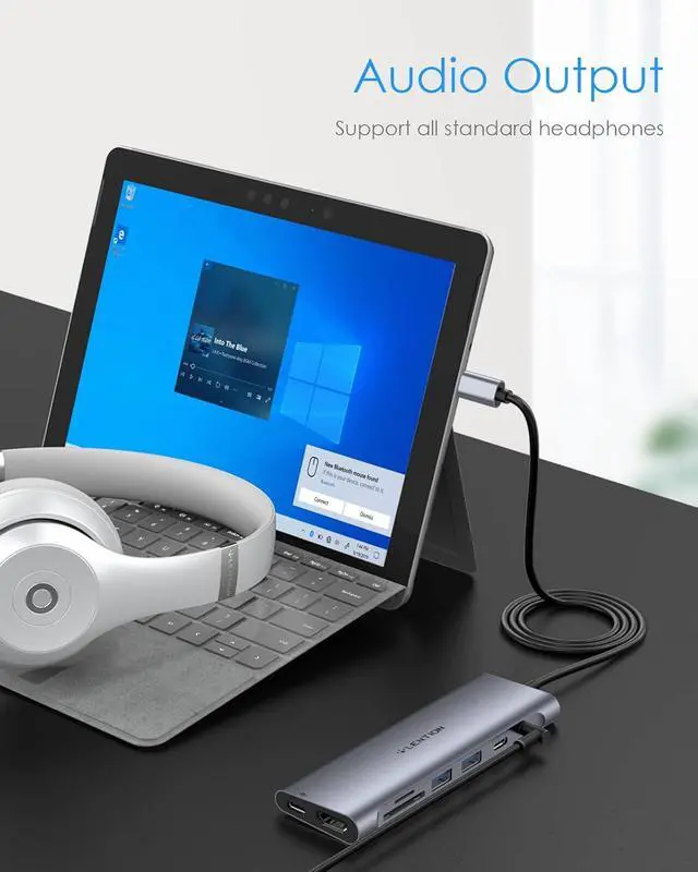Both Video & Audio: Mirror or extend your desktop onto any HDMI-enabled TVs, monitors or projectors via HDMI. Supporting 3840x2160 4K@30Hz, 2560x1600 and lower resolutions at 60Hz. The 3.5 mm audio port support mic in & out
