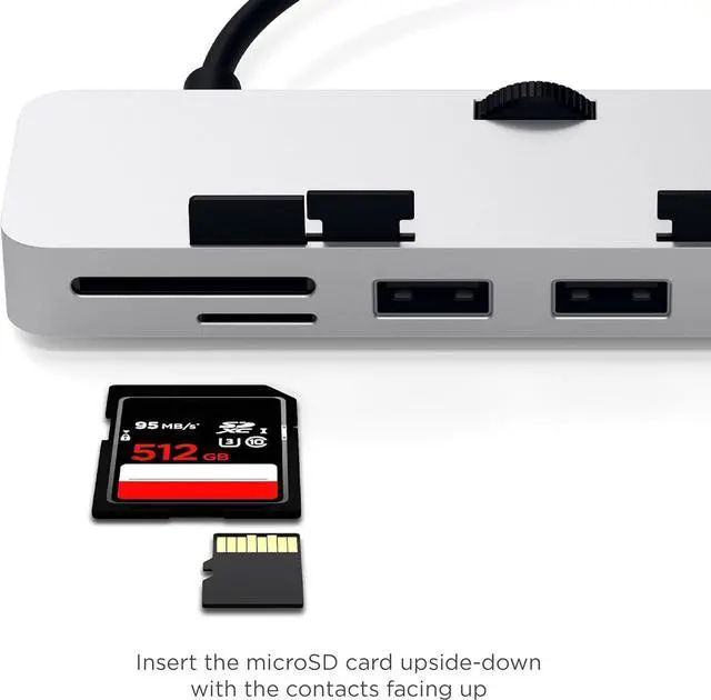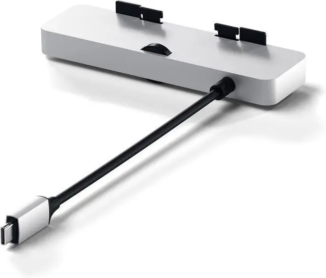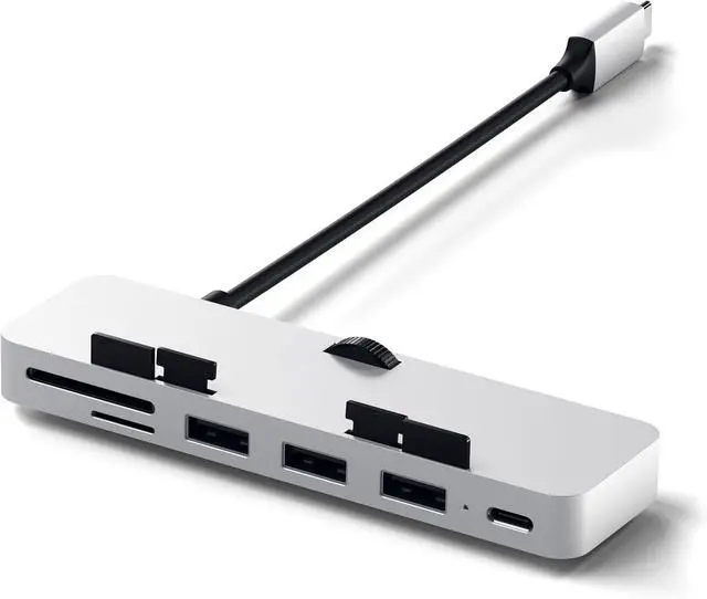 USB-C CONNECTION - securely plugs into your iMac's Thunderbolt 3 port via 6-inch shielded USB-C cable. Use the adjustable knob to fasten the hub to the bottom of your computer. USB-C port can be used for data transfer only. Charging through USB-C port is not supported.
