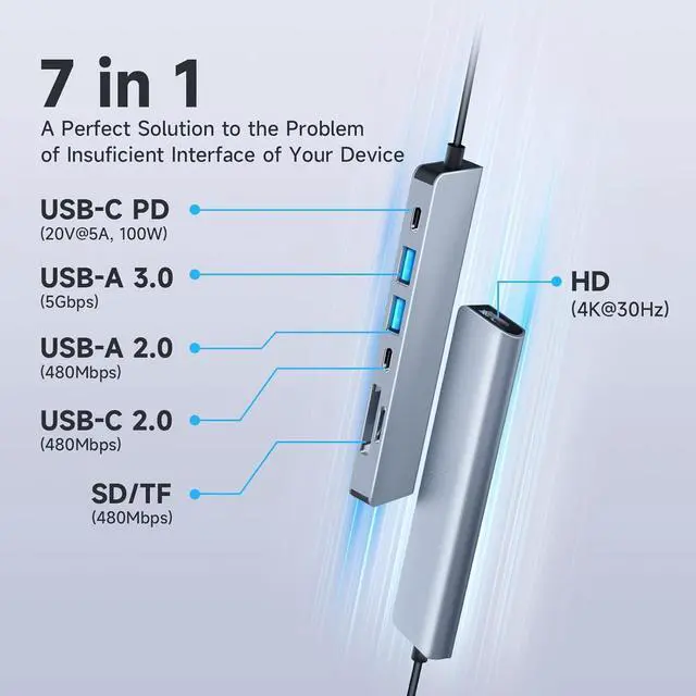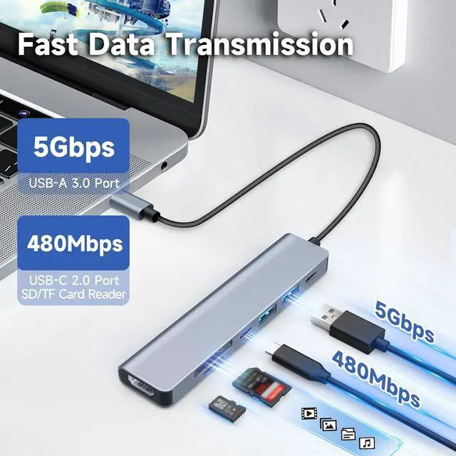 Take advantage of the versatility of this 7-port hub that doubles as an SD/TF card reader for an optimal design experience.