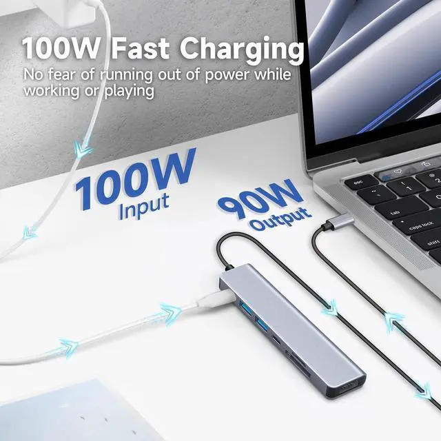 Take advantage of the fast PD100W charging feature of this hub, which allows you to charge your devices in no time.