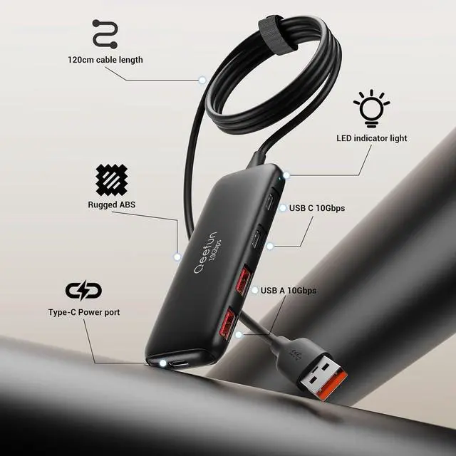 Hub: This hub adopts USB 3.2 Gen 2, the new generation of USB standards. The USB 3.2 Hub supports a max file transfer speed of 10Gbps. That's fast enough to transfer a 10 GB file in just 8.2 seconds