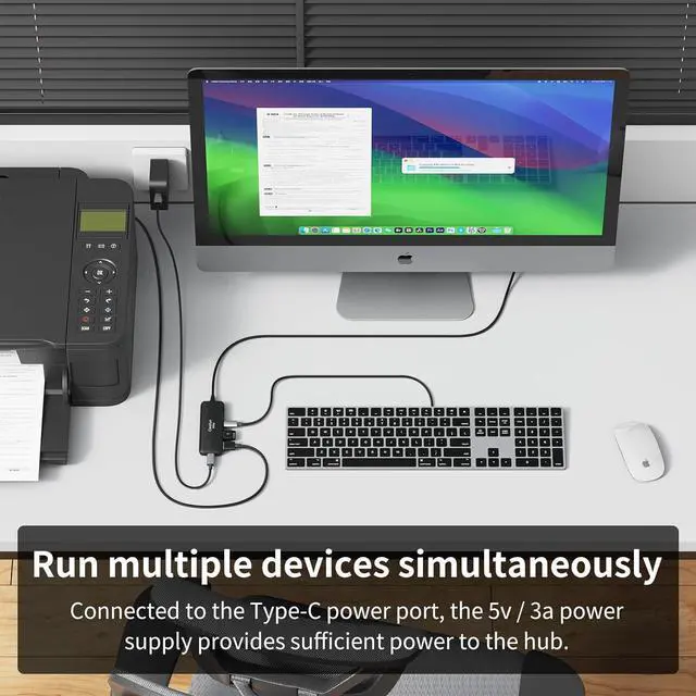 Note: The 4 ports share 10Gbps transmission speed. The USB C Power supply data transfer is not supported. Power to the Hub doesn't charge other devices such as computers or mobile phones. (Power cable not included)