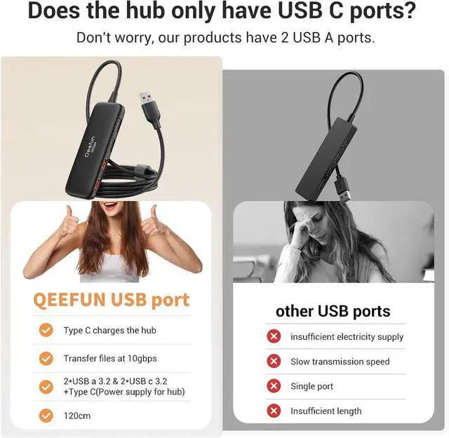 Extra Long 4ft Cable: Equipped with a 4ft cable, our hub can be easily connected to desktops and laptops, getting rid of the hassle of short cables, and has a velcro wrap for cable control. Helps to easily store it in your pocket, laptop bag and work anywhere.