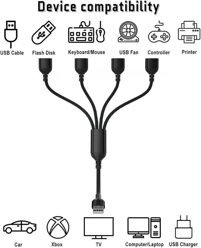 USB Splitter 4 Port Y Cable 3.3FT,Male to 4 Female USB-A Expander Hub,Multi USB Extender,Extra Multiport Data Charger Split Adapter for Mac MacBook,Xbox One Series X/S,Flash Drive,Laptop,PC,LED