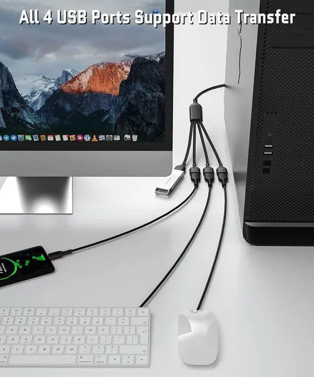 • (The One That Simplifies) Who says functionality does not go well with simplicity? With this USB-A splitter, you can use one cable to add four USB-A ports and leave your work space neat and tidy and your bag free from cable entanglements.