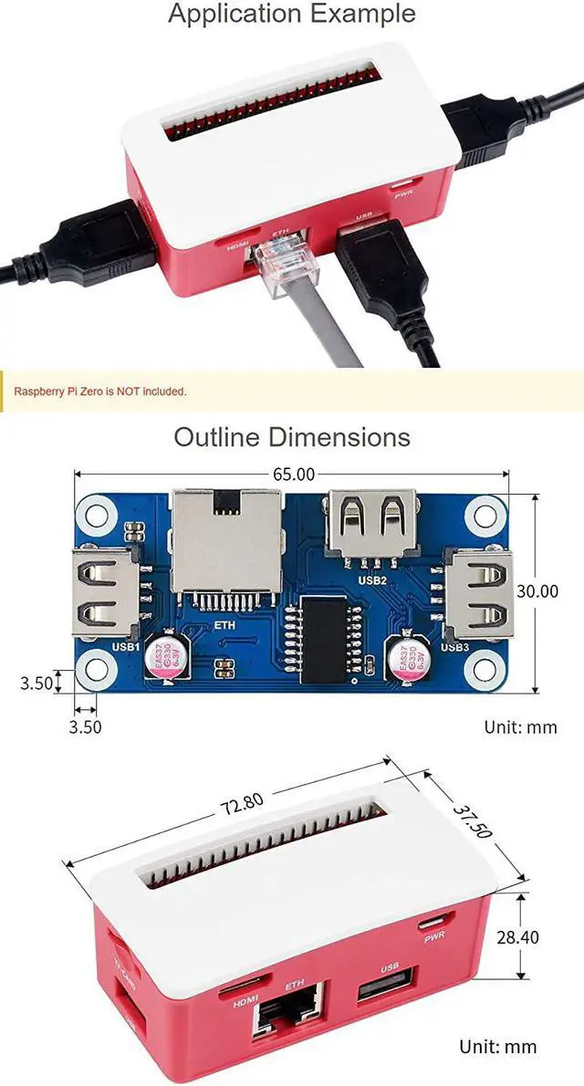 Designed for Raspberry Pi Zero, compatible with Zero series boards. 3x extended USB ports, compatible with USB 2.0 / 1.1