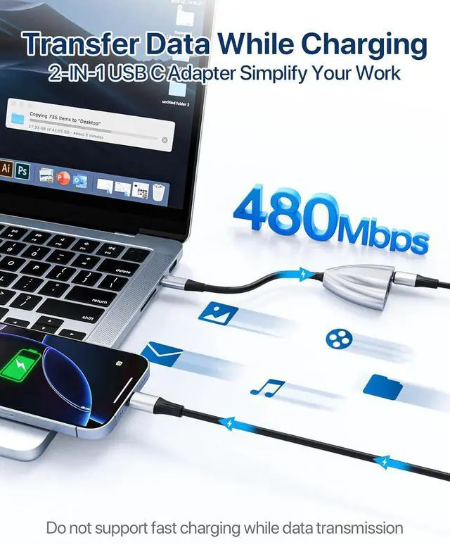 Fast Power and Data TransferCharge compatible smartphones, laptops, and tablets with up to 60W Power; support 480Mbps data transfer speed to download or transfer large files, videos, and pictures fast with a USB-C Port