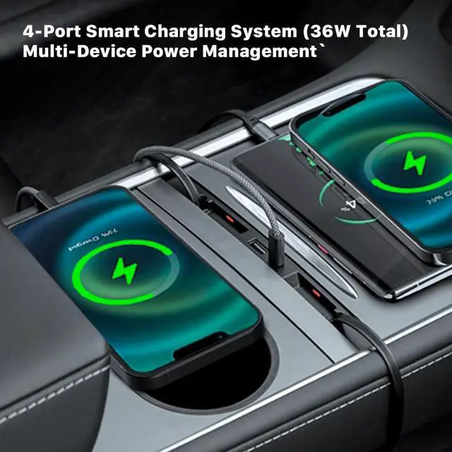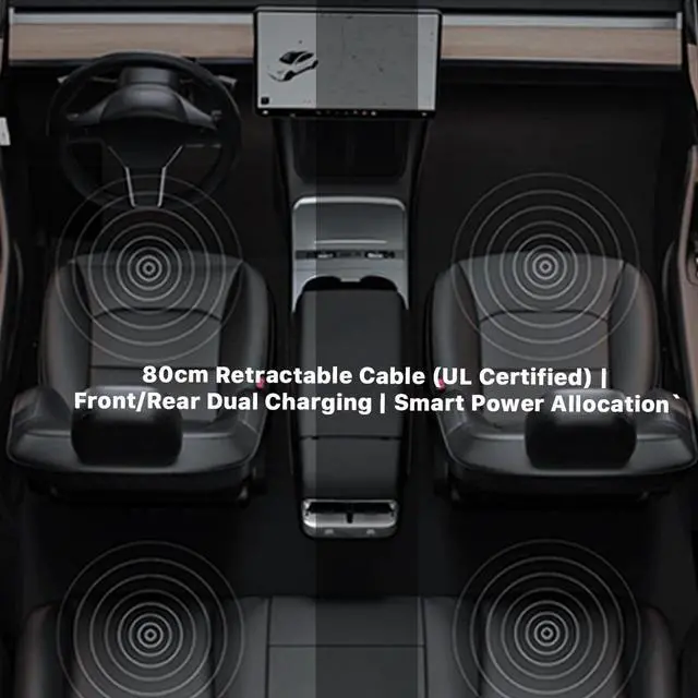 4-Port Rapid Charging Hub: Power up all your devices effortlessly! Our Tesla USB hub includes a retractable Type-C cable ( 31.5 -inch reach) and a Lightning cable, plus two additional USB & Type-C ports. The auto-retracting cables tuck away neatly after use, eliminating messy wires and keeping your console clutter-freea must-have upgrade for your Tesla.