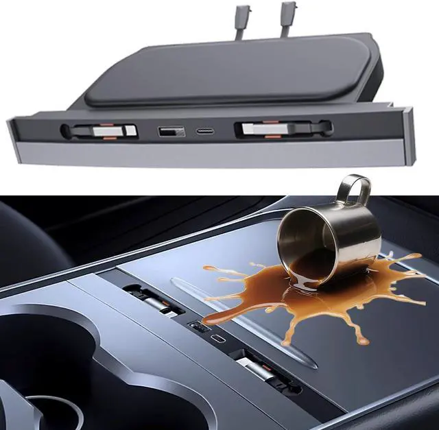 Ns upgraded waterproof Sliding Lid design. This innovative feature blocks liquids and dust, ensuring long-lasting cleanliness and durability for your Teslas interior.