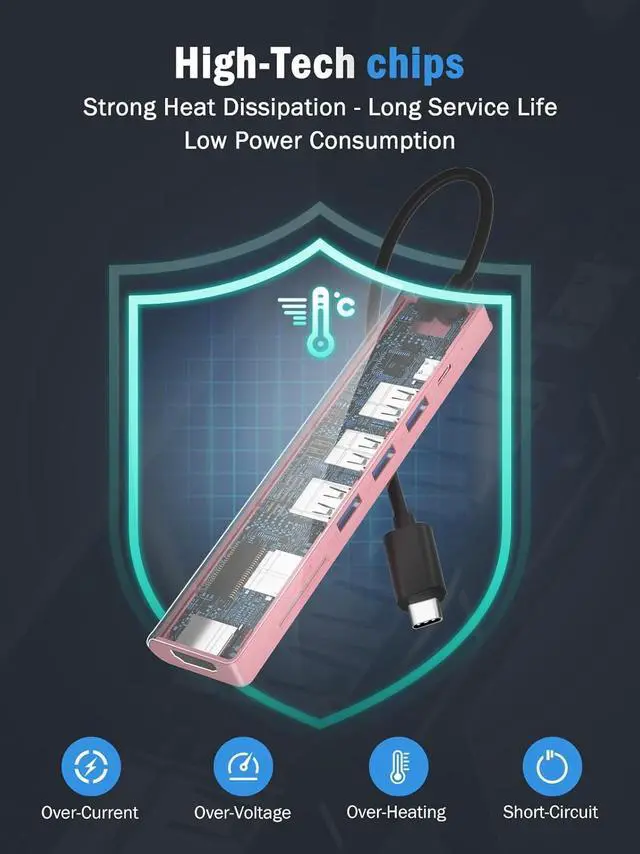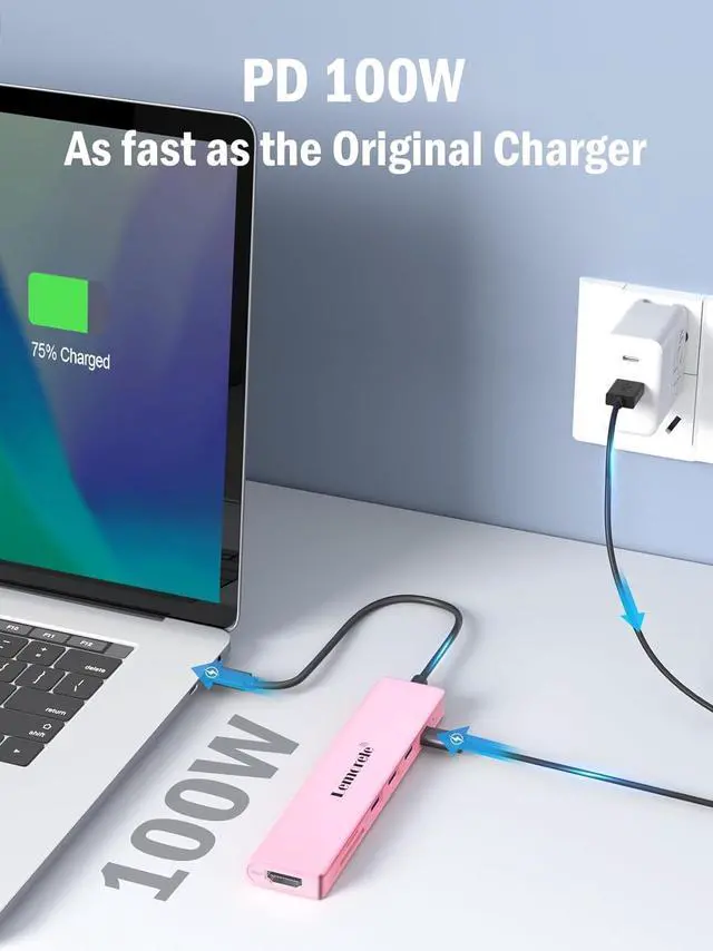 100W PD Charging port & Wide Compatibility: This usb c adapter hub allows you to charge your laptop up to 100W power while connecting multiple peripherals without worrying about running out of power. The high-strength plastic material is used to ensure heat dissipation, which is light and can be widely used for Steam Deck, Switch, Xbox, PS5, MacBook, Dell XPS, Surface/Lenovo/HP laptops, etc.