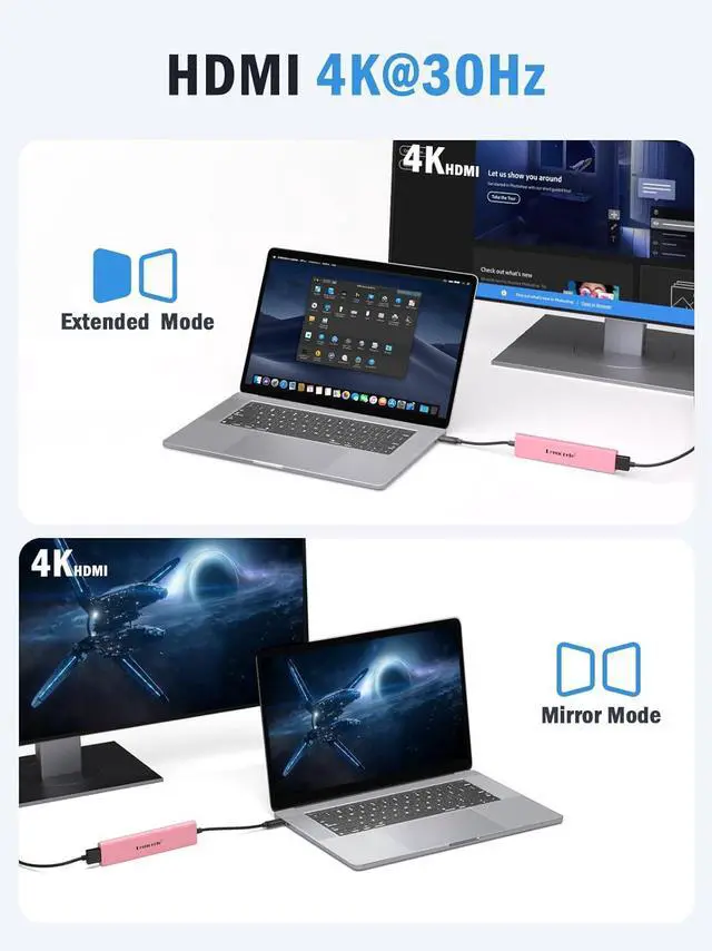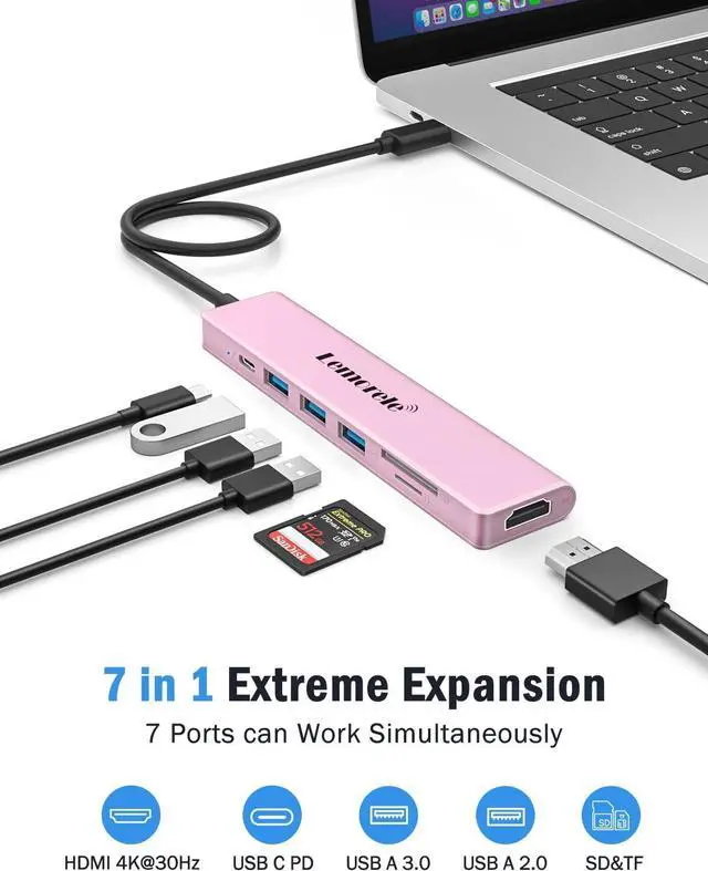 4K@30Hz Visual Enjoyment: Lemorele USB C HDMI hub supports 4K@30Hz, you can easily connect your USB C enabled device to any monitor, TV, projector, you can enjoy movies, games alone or with your family.