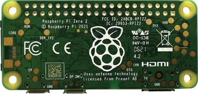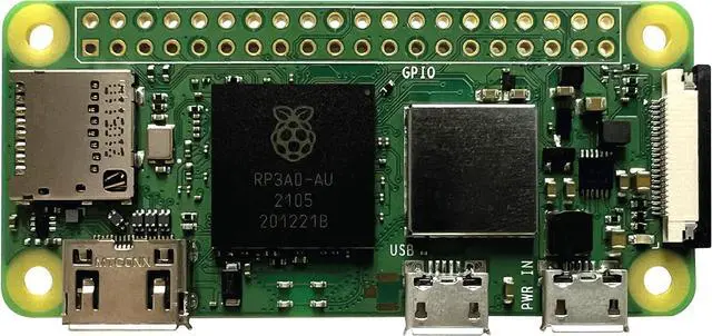 [Raspberry Pi Zero 2W] 65mm x 30mm board, Broadcom BCM2710A1 - quad-core 64-bit SoC (Arm Cortex-A53 @ 1GHz), 512MB of RAM with micro-SD Card slot, mini-HDMI, micro USB for data, 2.4GH z 802.11 b/g/n Wifi & Bluetooth 4.2 connectivity built-in, micro USB for power and Unpopulated 40-pin GPIO connector.