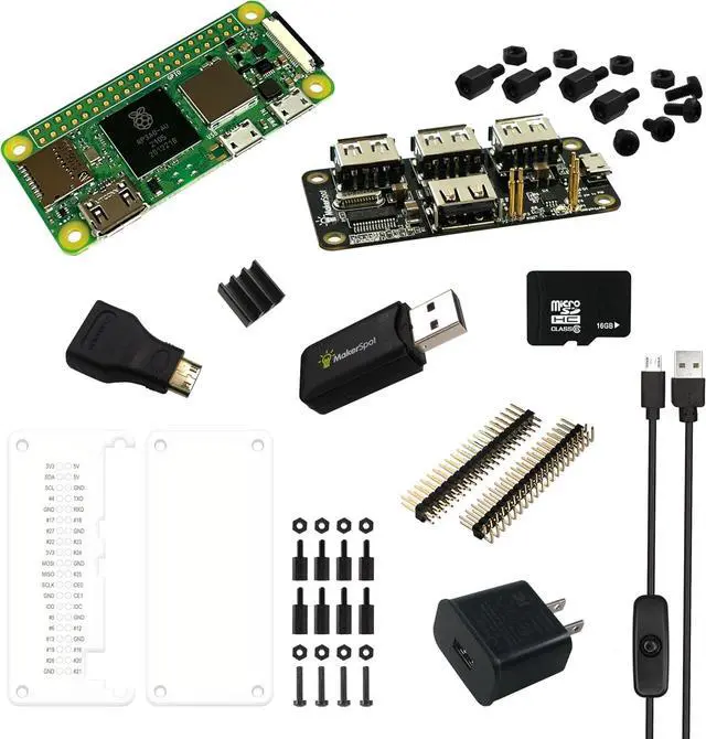 MakerSpot Pi Zero 2 W (WiFi/Bluetooth) Complete Starter Kit with 4-Port Stackable USB Hub, Mini HDMI Converter, Acrylic Protectors and 5V2.4A Power Supply
