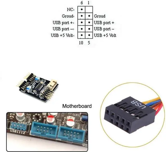 Motherboard 9pin USB 2.0 Header 1 to 2 Female Extension Cable HUB Connector Adapter Port Multilier