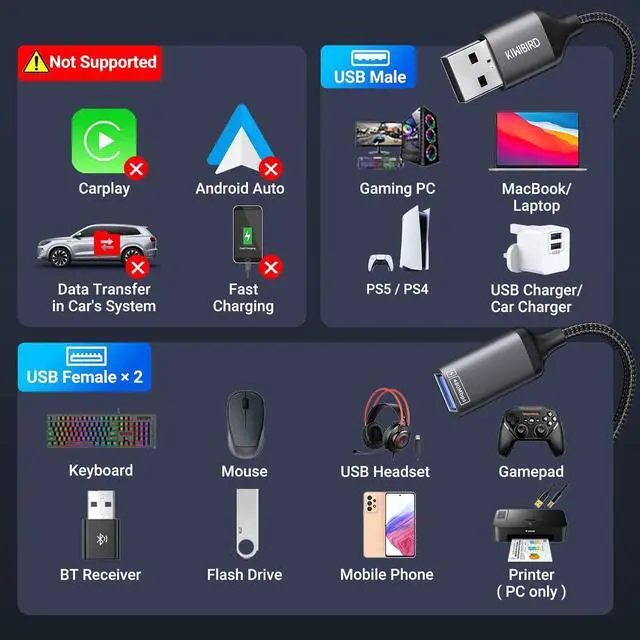 • Seamless Connectivity: Compatible with various peripherals such as flash drive, hard disk, keyboard, mouse, printer, bluetooth receiver, gamepad, USB power adapter, USB car charger, USB Fan, USB LED Light, USB speaker, and USB charging cable. Ensuring effortless connectivity for your essential devices.