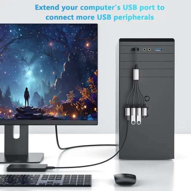 Compact & Portable Design Lightweight and easy to carry, this USB splitter is great for travel or everyday use. One cable to meet all your connection needs.