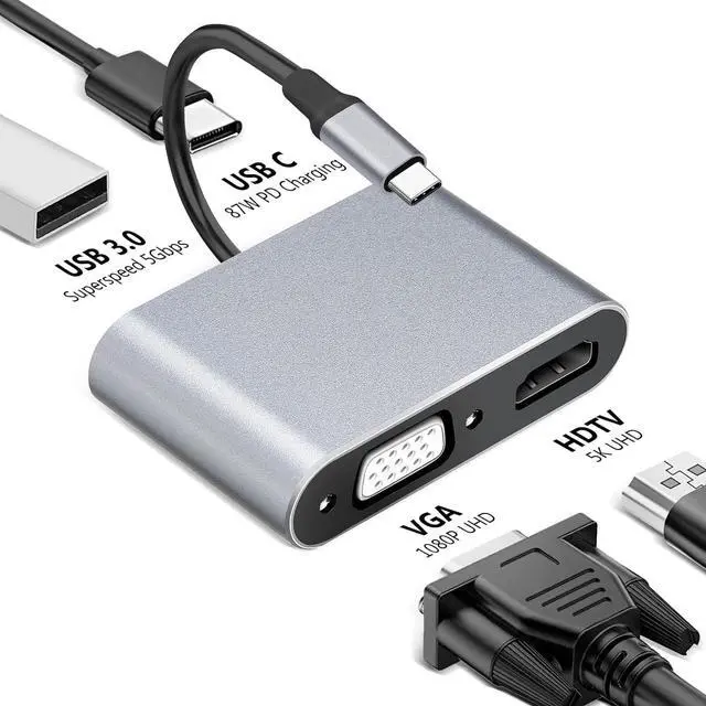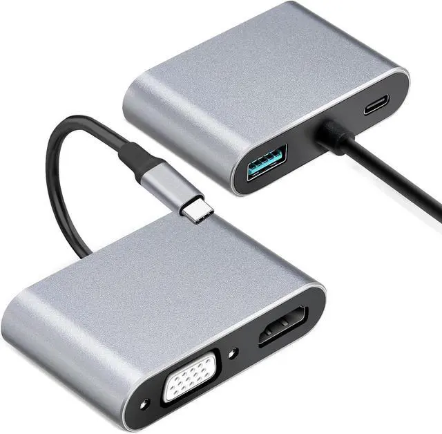 USB-C HDTV VGA MULTIPORT ADAPTER - Plug and play USB C to VGA HDTV adapter/converter can expand your USB-C port male to female 4K HDTV port / 1080p VGA port / USB 3.0 port / 100W USB C PD charging port simultaneously. This 4 in 1 USB C Adapter is portable and lightweight, perfect for meetings, presentations, conferences, workshops, lectures, home video playback etc.