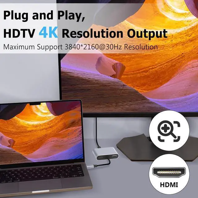 ULTRA HD 4K HDTV VGA VIDEO OUTPUT - USB C to HDTV supports 4K resolution video at 3840x2160@30Hz (HDTV); USB C to VGA supports resolutions up to HD 1080p@60Hz. Both of them can mirror or extend your screen for work or entertainment.