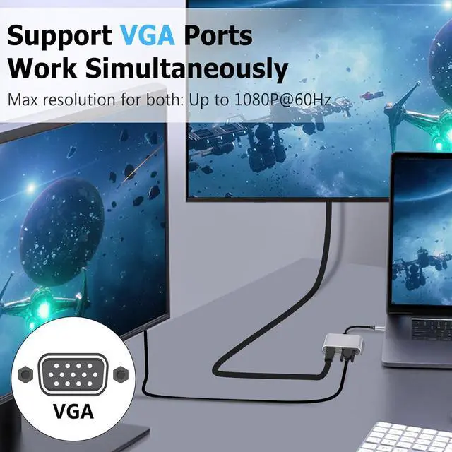 Note: When the USB-C to HDTV and USB-C to VGA work simultaneously, Resolution can only reach up to 1080P.