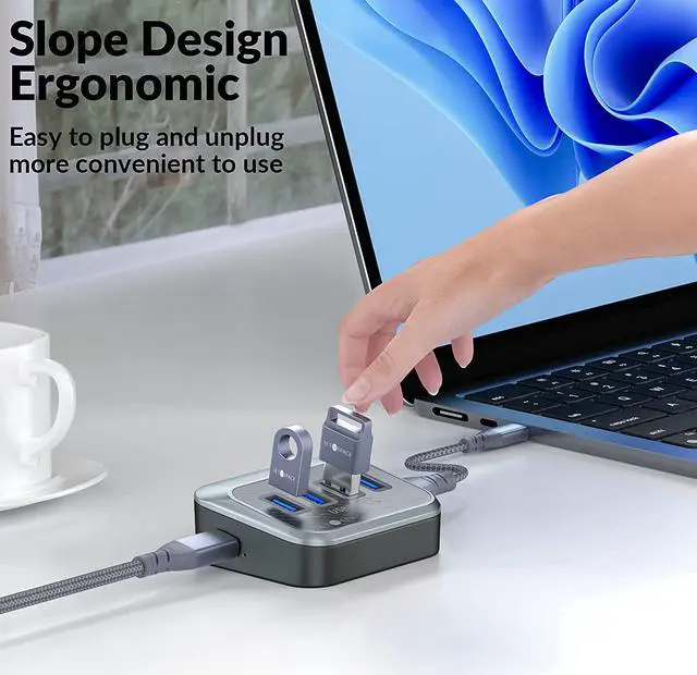 Power PortOur USB hub for laptop is equipped with a USC power port on the left side to avoid the problem of high power storage devices such as HDD not working properly. (Not support charging for lapyop, tablet, phone