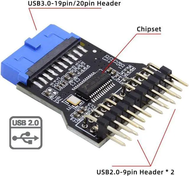 USB 3.0 Front Panel Header USB 19Pin to 2 USB 2.0 9Pin Extension HUB Connector Adapter Port Multiplier.