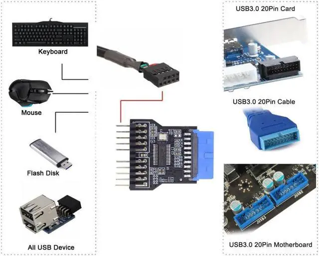 Desktop 19-Pin USB 3.0 HUB to USB 2.0 9 pin Connector Adapter Port Multilier.