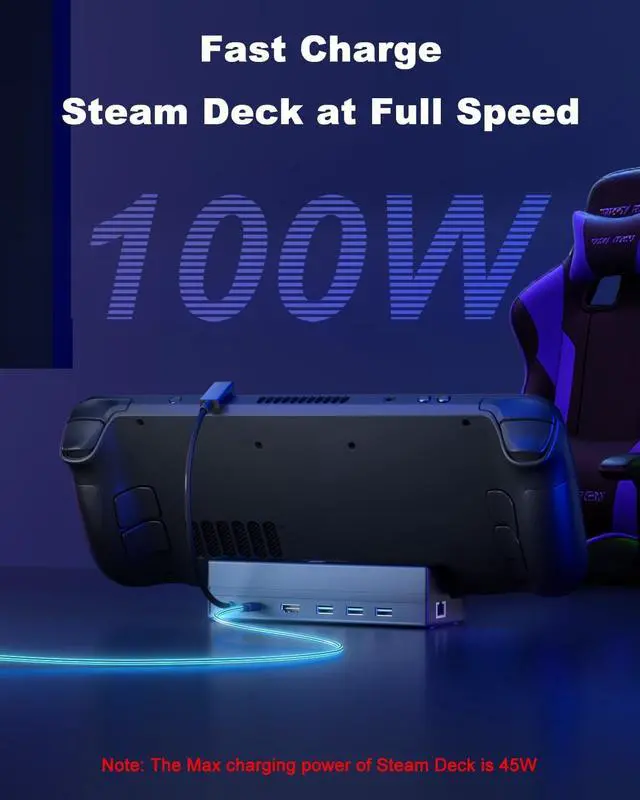 [Fast Power Charging] - Supporting up to 100W power delivery, this docking station ensures your USB-C game device charges at maximum speed. [Note: Please use at least 65W power adapter (not included) when charging with this usb c hub, to essential for optimal performance]
