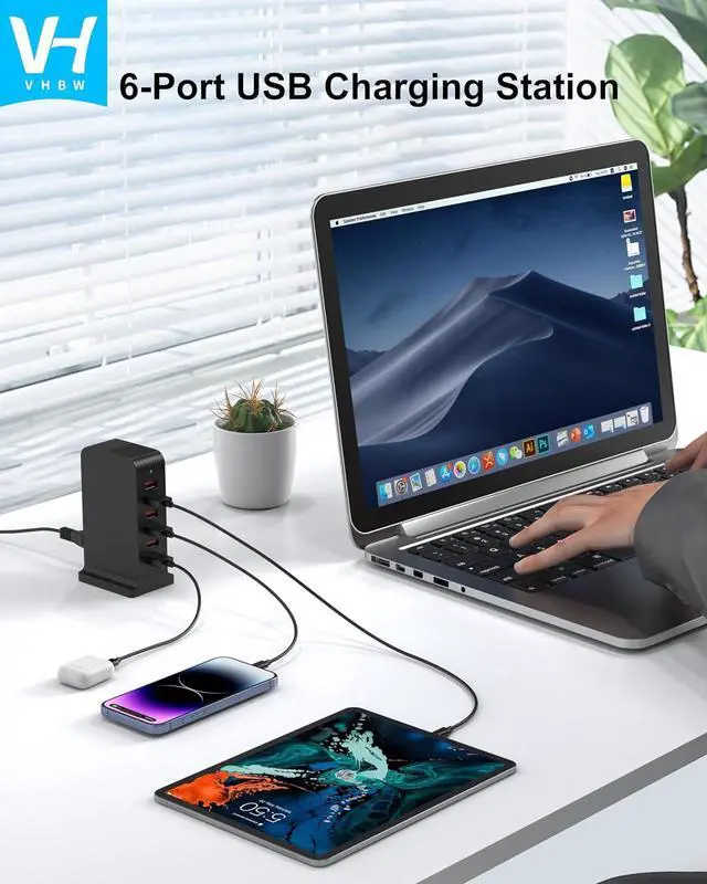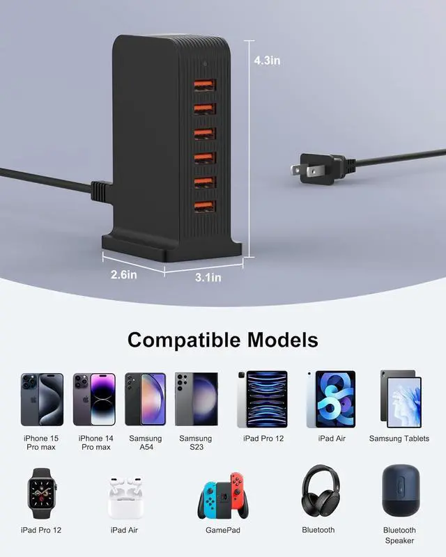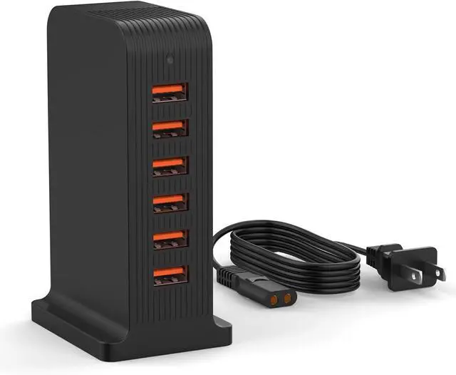 Centralized Power for a Tidy SpaceThis 6-port USB charging station allows you to power multiple devices from a single wall outlet. Its vertical design helps reduce cable clutter and organize your charging area on a desk, kitchen counter, or nightstand, creating a dedicated power hub for the whole family's electronics.
