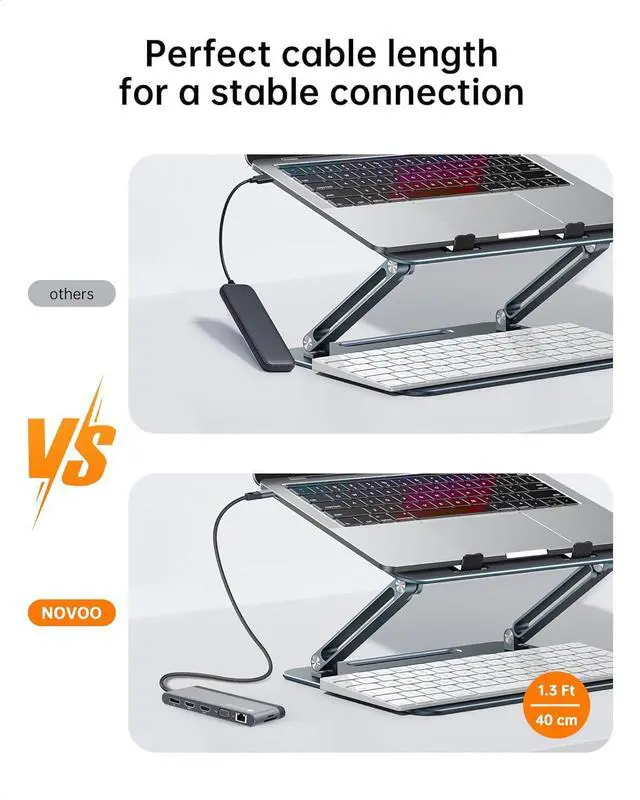 • 4K@30Hz Triple Display Docking Station 3 MonitorsNOVOO USB C Docking Station will hook up triple displays to dual HDMI and DP in 4K@30Hz (DP1.4 Source).Windows System support MST and SST(Mirror & Extend Mode). All Mac laptop only supports SST mode, MAC OS can only extend one monitor. Single DisplayPort support up to 8K@30Hz. With this USB C Dock, you can enjoy an 8K ultra high definition movie experience and 3D visual effects