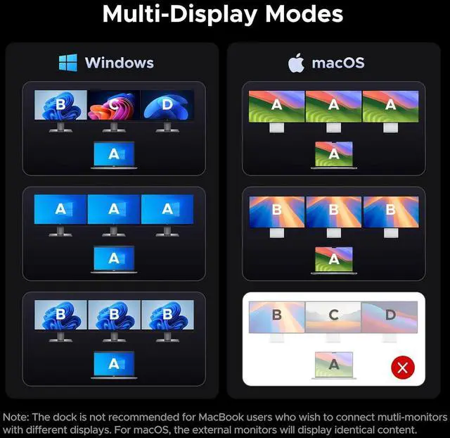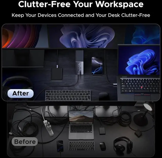 Optimized for Windows Laptops for Maximum Performance: Achieve peak performance with ThinkPad, Dell XPS, HP EliteBook, and Surface devices. This triple monitor docking station guarantees reliable multi-display support, fast data transfer, and rock-solid stability for your office or home setup
