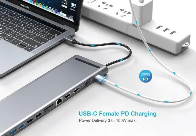 Quick Power Supply, the PD charging port, compatible with Type C devices and MacBooks, offers a quick power supply of 100W/20V/5A, with a safety limit of 87W.