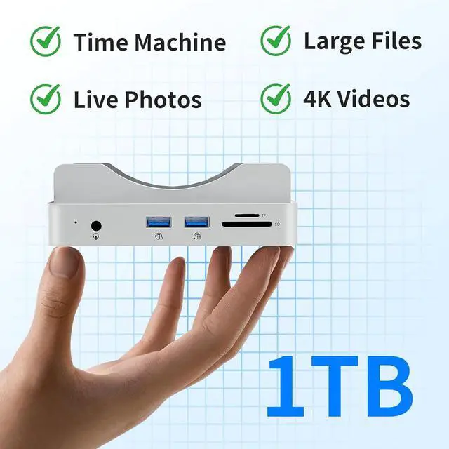 Built-in NVMe SSD: The PSE Mac mini M4 Dock comes with a integrated 1TB NVMe SSD (non-removable). Whether you're running demanding software, editing high-resolution videos, or handling large amounts of data, you'll benefit from read/write speeds of up to 1000MB/s for smooth performance. Due to the ExFAT format, the PSE is plug and play.