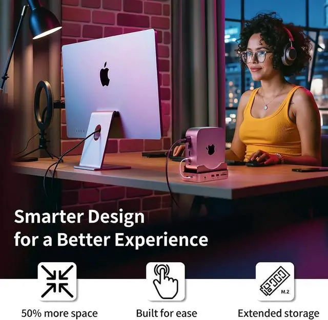 Save up to 45% desk space & enhanced cooling: The vertical stand frees up valuable workspace while improving heat dissipation through a side-out ventilation design. Natural upward airflow helps your Mac mini stay cooler and maintain long-term performance.