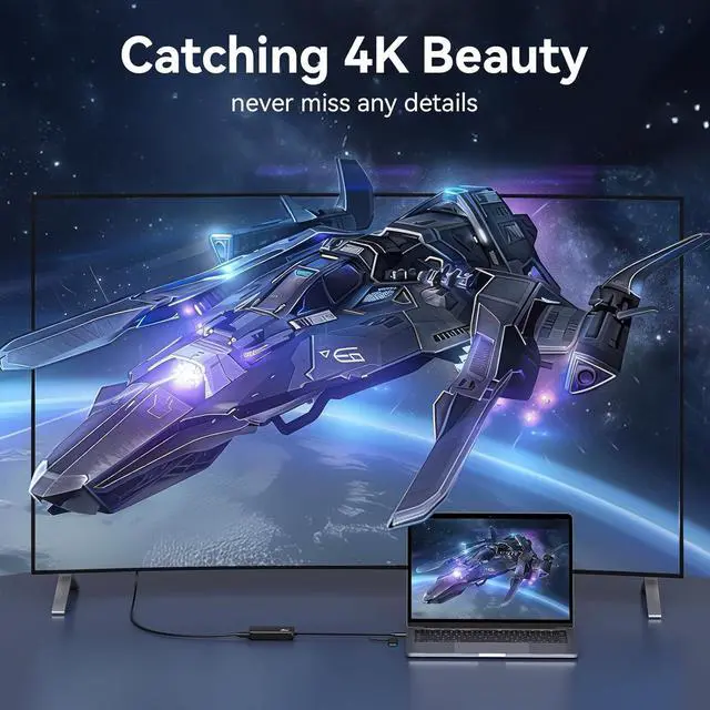 Connect two HDMI extended displays, expanding your workspace or entertainment area with ease, seamlessly switch between views, and enhance productivity. Enjoy crisp, lifelike 4K HD visuals for immersive content experiences that captivate and inspire