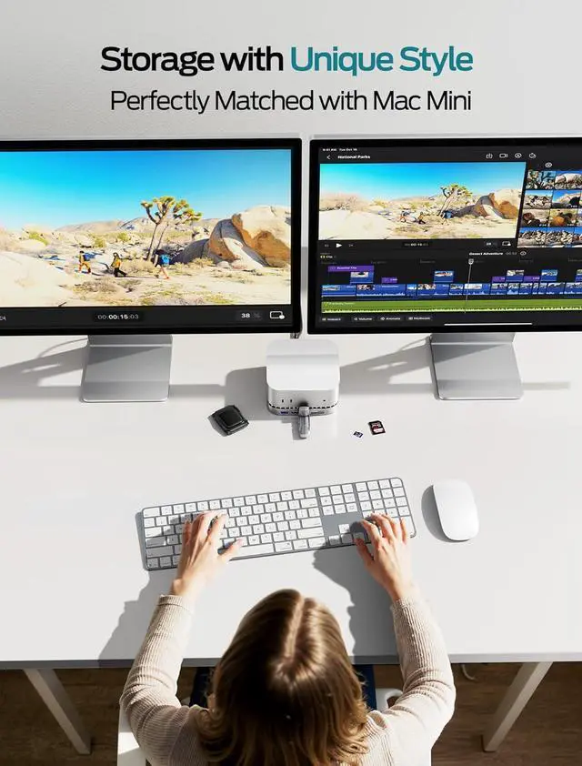 Space-Saving Vertical HubEngineered for creators & minimalists, this Mac mini M4 Dock vertically stacks your device to free up 45% desk spaceperfect for compact studios or busy workspaces. Its sleek, Apple-matched design features curved edges that blend seamlessly into your setup, while built-in airflow channels keep your Mac cool during intensive 4K video editing or 3D rendering sessions