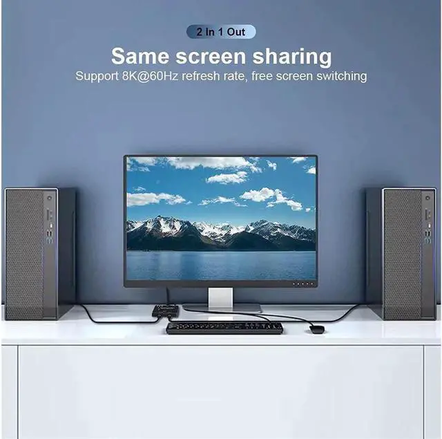 3: If you connect to your USB-C Monitors, your Monitor's USB-C Ports should support Video Transmitting. USB-C Switch with Power and Data Function, It supports Max 100w Power Delivery and Max Transmissions Speed 10Gbps(USB 3.1 Gen2), With our switch, you can charge your mobile phone, computer, tablet and other devices, and you can also transfer data from your computer, mobile phone, etc. to your U disk and other devices. Both data and charging functions require your USB-C cable to support the above functions. Ultra 8K Video Output, you can output max 8K@30Hz 4K@120Hz 1080P@165Hz via our USB-C Switch/Splitter to your USB-C Displays, The maximum resolution of your output depends on your Source device, monitor and cable used. When you use our switcher to realize the video function, we recommend that you do not use too long cables (The sum of the cables at both ends does not exceed 3 meters). Too long cables at both ends will cause the screen to flicker or the screen cannot be displayed