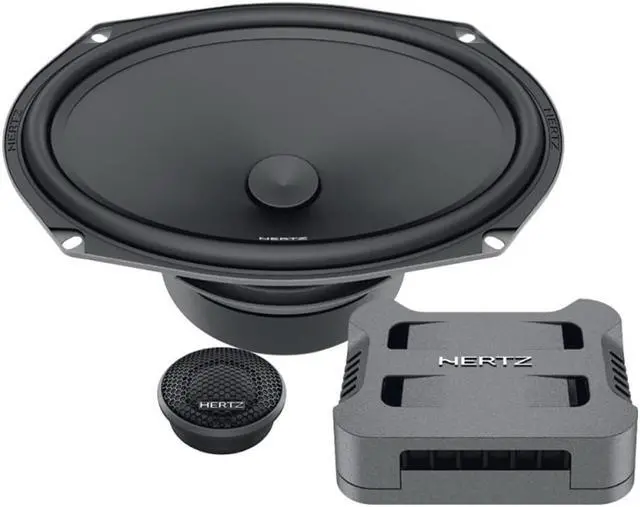 With the Hertz CPK690-P system, the pressed-paper cone with FEM-optimized geometry, it combines rigidity and lightness for a color-free sound. 30 mm ( 1.2 in. ) double layer voice coil sized to maximize fhigh excursion and power handling. High-density flux ferrite magnet combined with low-carbon polar plates for reduced distortion at high power levels. Compact and transparent three-spoke basket, acoustically combined with a rubber magnet cover for total damping of spurious vibrations.