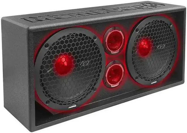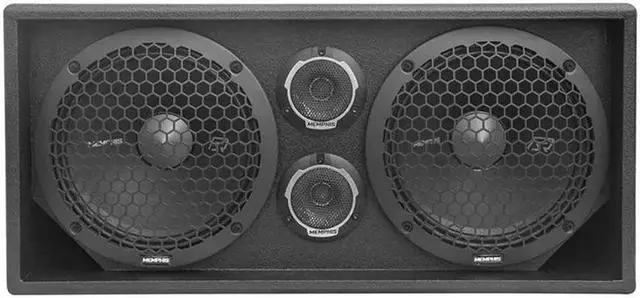 Unleash immense sound from a compact package with MemFuego from Memphis Audio! Our new MemFuego all-terrain full range box boasts a rugged bed liner exterior, perfect for turning heads at tailgates, car shows, or anywhere you want to make a bold sound statement. Featuring dual 10 SR Pro mids and pro audio tweeters, it delivers an explosive 500 watts of professional-grade audio in a portable format. With quick disconnect plugs for hassle-free mobility, you can effortlessly set up your MemFuego for a massive sound experience wherever you desire. SRXPE10D4T boxes showcase a mesmerizing display of RGB LED lights, including an illuminated dust cap and rear-mounted ring lights on the mids and fully translucent illuminating tweeters, creating an epic lightshow.