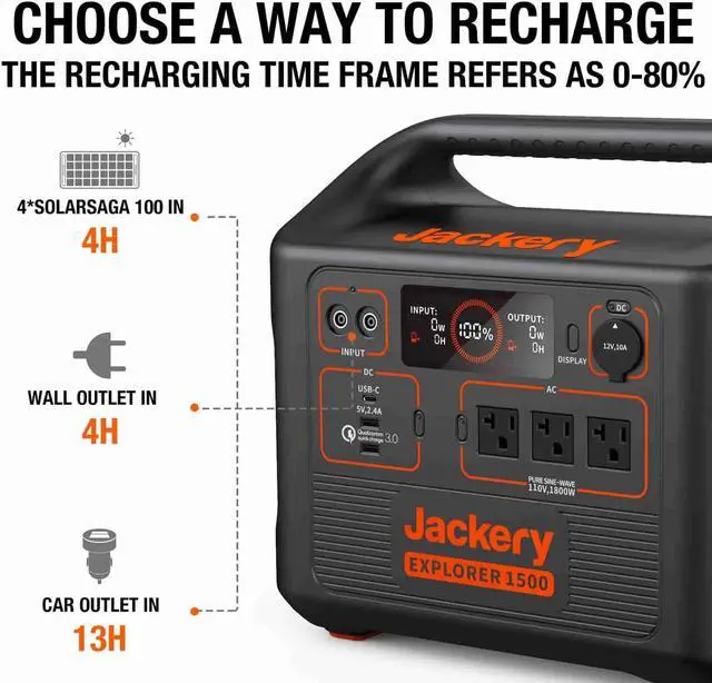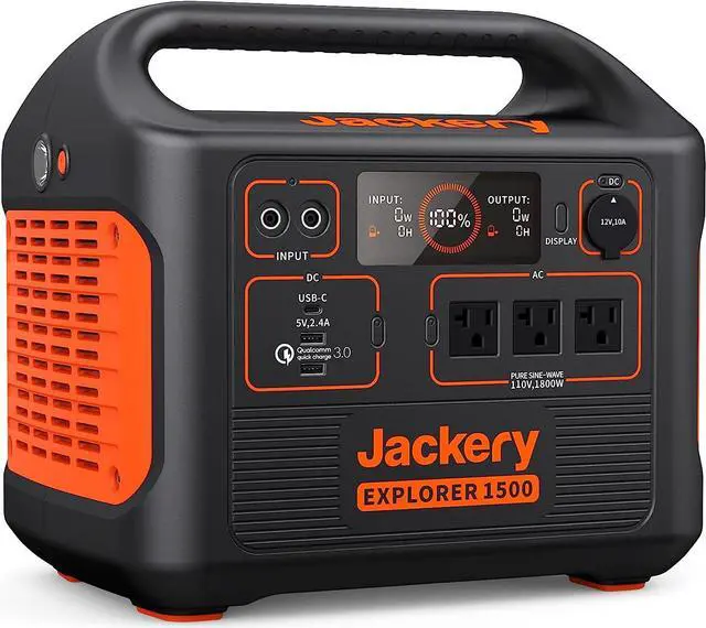The Jackery Explorer 1500 offers a stable and secure power solution, boasting a capacity of 1534Wh, 1800W AC outputs, and efficient recharging capabilities. With the ability to power up to 7 appliances simultaneously, it is the perfect choice for various situations such as camping, RV/Van life, outdoor activities, or as an emergency home backup. Its versatility ensures that it can cater to all your power requirements, no matter the time or location.