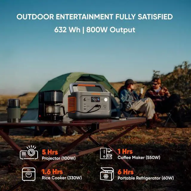 Satisfy all your outdoor entertainment needs with the Jackery Explorer 600 Plus! With an 800W output and 632Wh capacity, it supports a wide range of outdoor entertainment devices. Plus, its dual PD fast charging can reach up to 100W, ensuring your devices are powered up quickly. Whether you need long-lasting power, emergency backup, or quiet charging that won't disturb, the 600 Plus has you covered.
