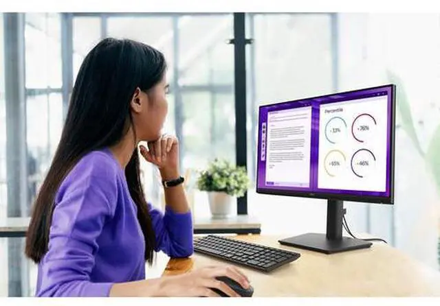 Designed for comfort and convenience, the E2425HSM includes multiple display position adjustments, including height adjustment, pivot, swivel, and tilt, allowing users to achieve a comfortable viewing angle. Additionally, Dell ComfortView Plus reduces harmful blue light emission, minimizing eye strain during extended use. EPEAT Gold certified and ENERGY STAR certified, this monitor is effective and environmentally friendly, making it a solid choice for any workspace.