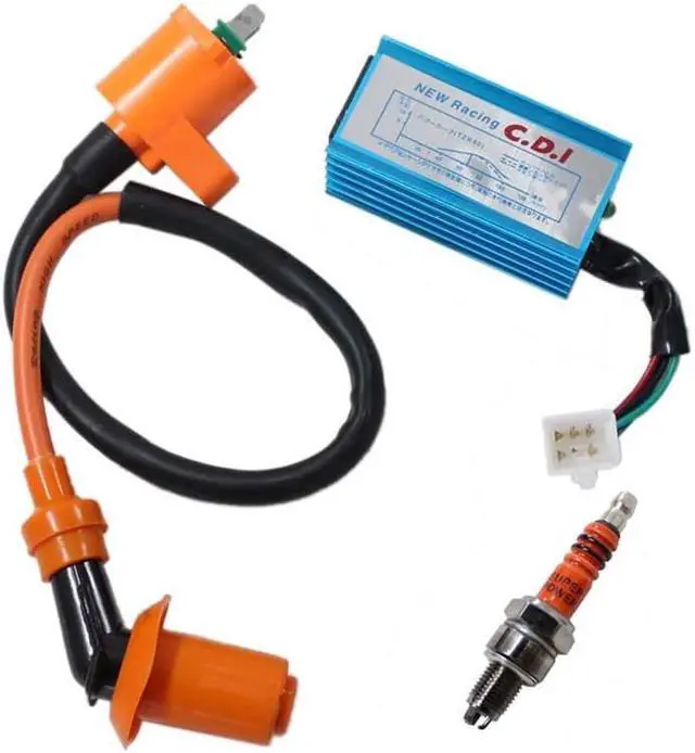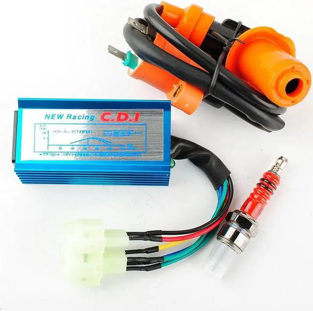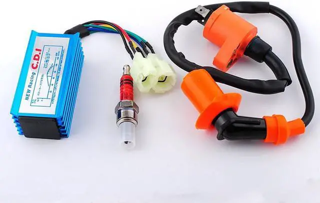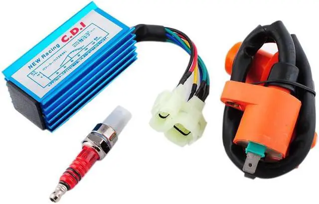 This New 6 pins racing high performance CDI + Ignition Coil + Spark Plug for Gy6 50cc - 150cc Scooter ATV