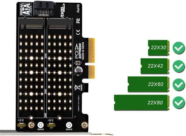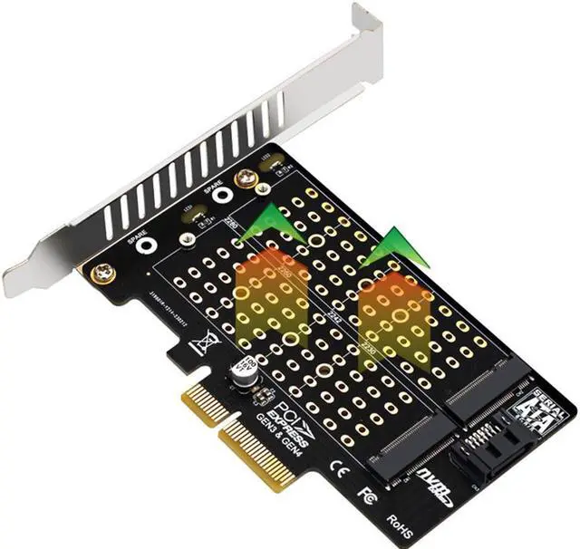 M.2 NVMe NGFF SSD to PCIE x4 x8 x16 SATA Dual SSD PCI Express Adapter Card