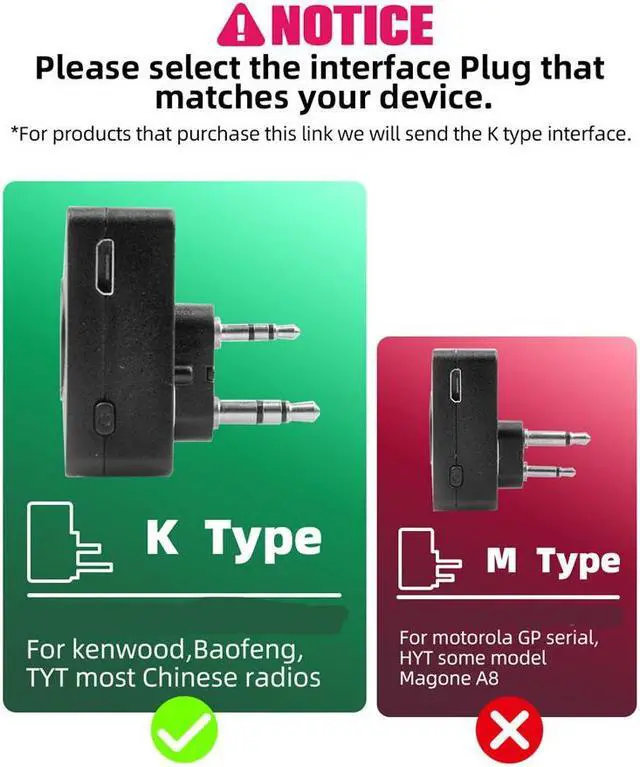 K Port PTT interface, for Baofeng Kenwood TYT PUXING etc Radio Suitable for ear, Portable and light, carry easily Mini PTT key and Bluetooth adapter Loud and Clear voice Low Power Consumption Large Capacity Battery Micro usb charge port.