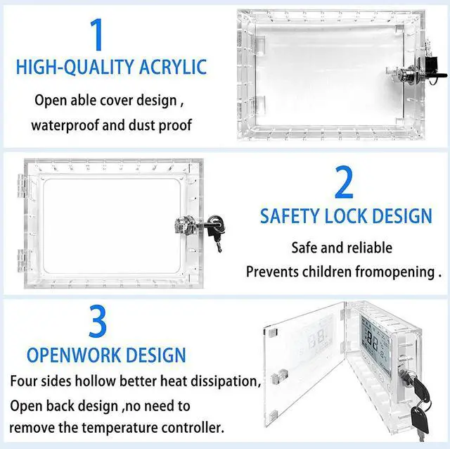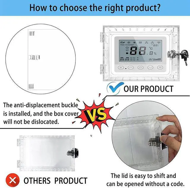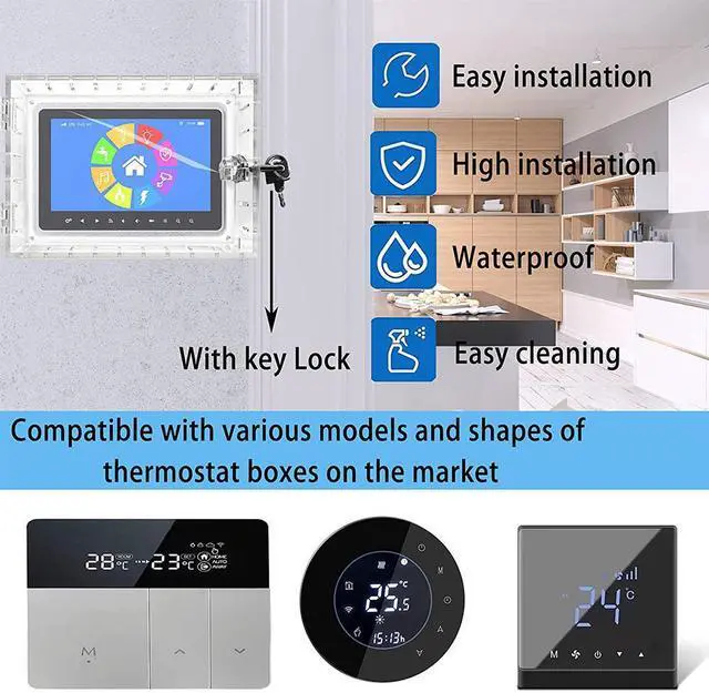 The thermostat cover with lock is suitable for homes, restaurants, schools, hotels, factories, etc., to keep the thermostat away from tampering, and can protect the thermostat and extend its service life.