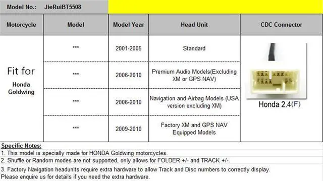 The Multimedia Bluetooth connector BTA, BTA Bluetooth supports hands-free answering the phone (can answer/hang up the phone through the original car audio host and control buttons), supports A2DP Bluetooth music playback (through the original bike audio host control selection Song/fast forward/rewind/pause, and support multiple Bluetooth devices)