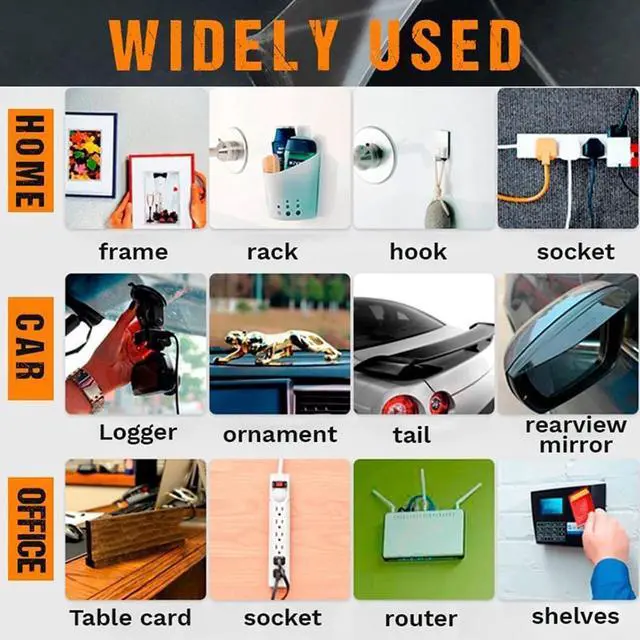 Versatile: This double-sided tape can stick to almost any smooth surface, so you can stick anything anywhere. You can use it to attach or paste pictures, photos, picture frames, wall stickers, posters, and other items, hooks, shelves, cell phone holders, rugs, flower pots, cups, decorations, crafts, and so on.