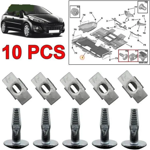 10PCS Car Engine Undertray Cover Clips Bottom Shield Guard Metal Screws Bolts Fastener For Peugeot 206 207 407 Citroen C2 C5