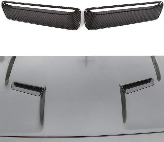 Carbon Fiber Look Engine Hood Air Vent Intlet Cover Trim For Dodge Challenger 2015-2022